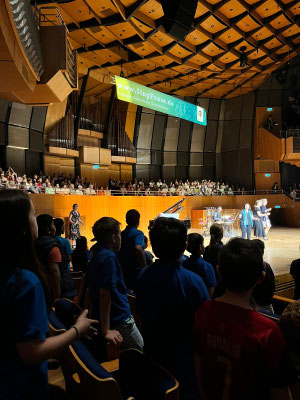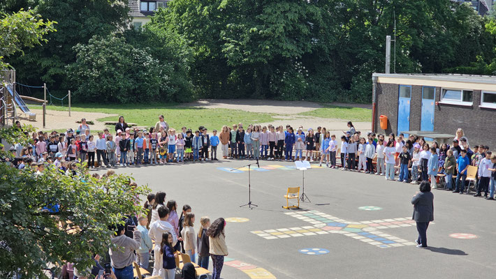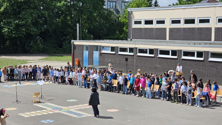 Ein Jahr lang haben wir mit Frau Nikolova 2x in der Woche die Lieder eingeübt. Im Mai laden wir unsere Eltern ein und zeigen schon mal, was wir können. Im Juni gehts dann zum großen Singpausenkonzert in die Tonhalle.