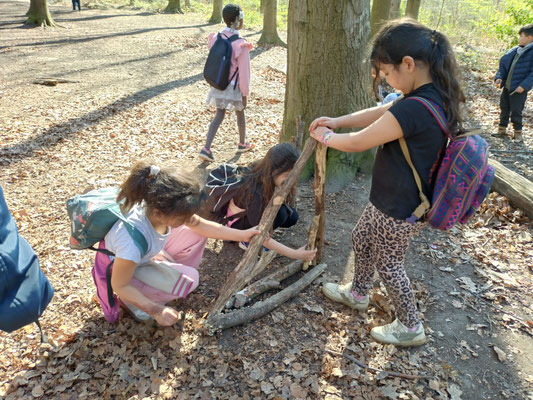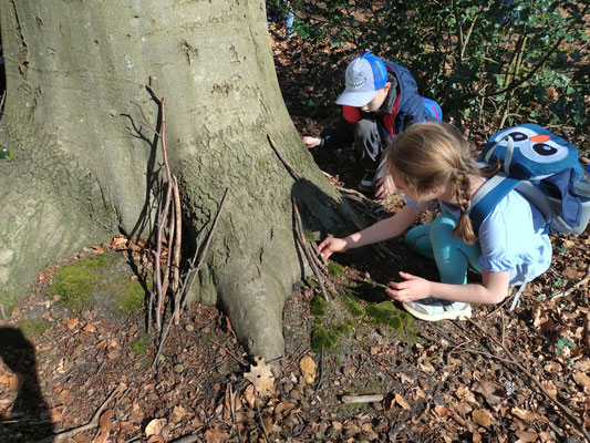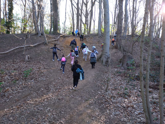 Bei unserem Jahreszeitenprojekt fahren wir Erstklässler zu jeder Jahreszeit einmal mit der ganzen Klasse in den Wald.
