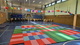 Für die Viertklässler geht die Grundschulzeit zu Ende. Für die Abschlussfeier in der Turnhalle ist alles vorbereitet. Am letzten Schultag sagen wir alle: "Auf Wiedersehen!"