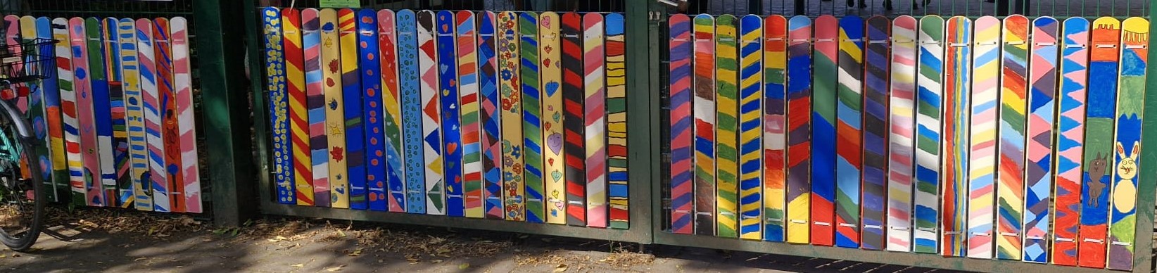 Herr Schiffer hat die Wand zwischen Turnhalle und Gebäude C neu angestrichen, Frau Schaaf hat unseren Schulnamen gezeichnet, nun können wir Kinder loslegen.