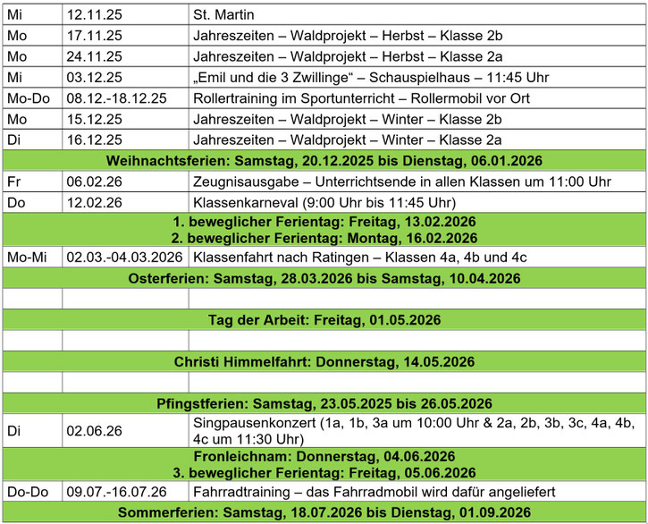 Termine im Schuljahr 2025/2026 - 1. Halbjahr und Ausblick